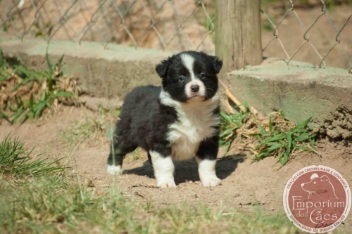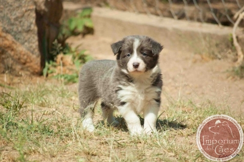 Cores possíveis dos filhotes dessa ninhada: pretos e brancos e azuis e brancos.